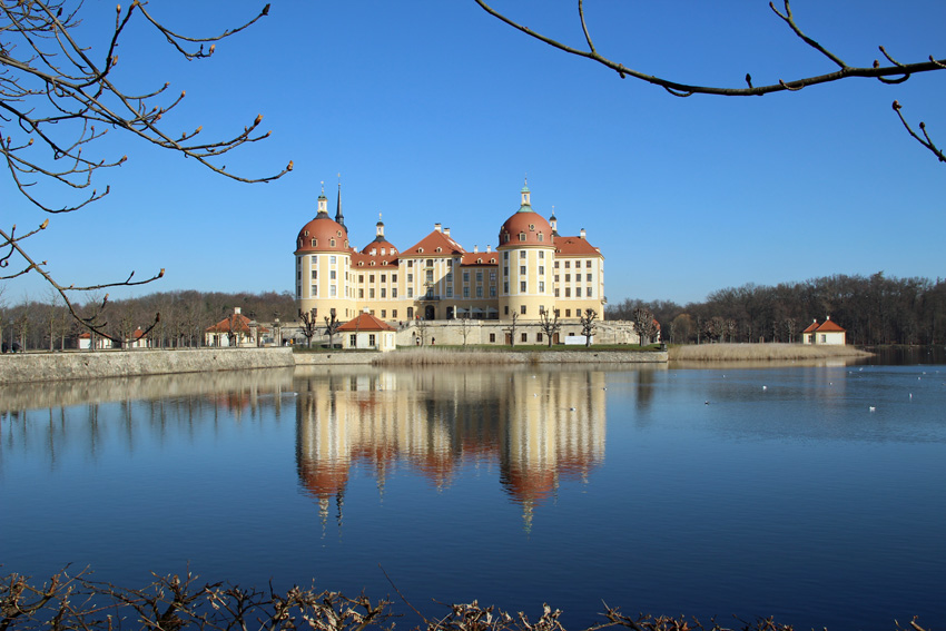 Das kleine Örtchen Moritzburg in der Nähe von Dresden ist ebenso zu jeder Jahreszeit einen Besuch wert. Berühmtes Wahrzeichen Moritzburgs ist das Schloss inmitten eines der vielen Teiche gelegen. Auch der einzige Leuchtturm Sachsens oder die Fasanerie gehören zum barocken Ensemble. Weithin bekannt für seine hervorragende Zuchtarbeit ist das Sächsische Landgestüt. Auch zu Moritzburg gehörend, etwa 1,5 km entfernt, liegt das Wildgehege Moritzburg. Viele heimische Tierarten aber auch ehemals hier in freier Wildbahn lebende Tiere wie Luchse, Elche oder Wölfe werden hier in großzügigen Anlagen gehalten. Seit Kurzem gibt es hier einen Hochseilgarten.