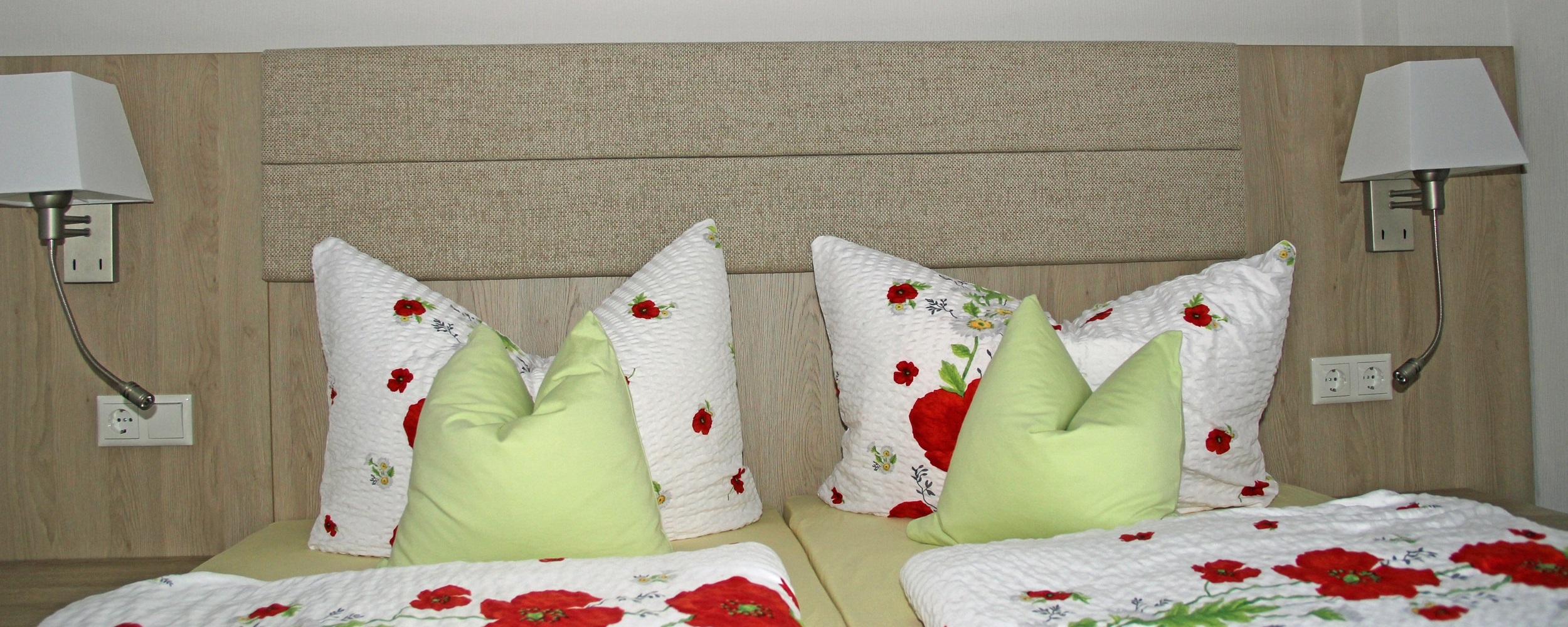 Die freundlich-hellen Gästezimmer unseres Hauses sind mit Bad, Dusche/WC, Telefon, Farb-TV ausgestattet.